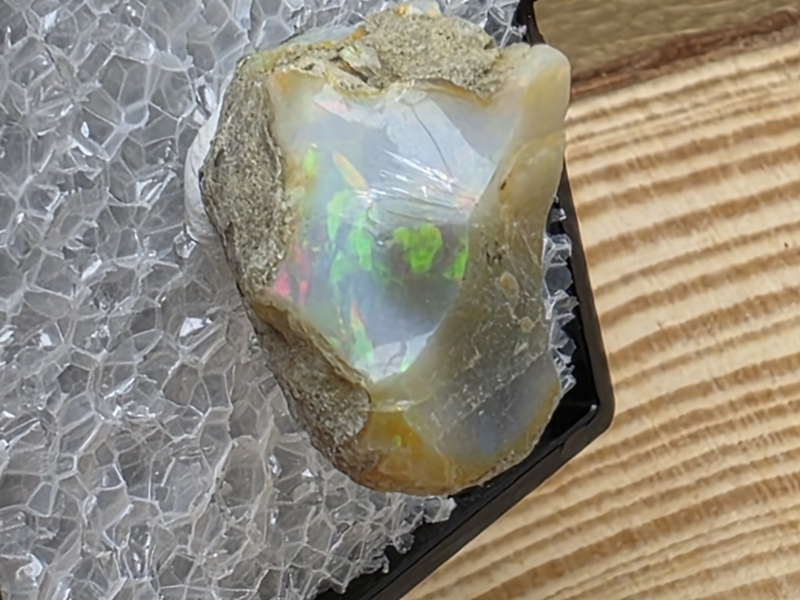Zwarte opaal of welo opaal ruw stukje in doosje