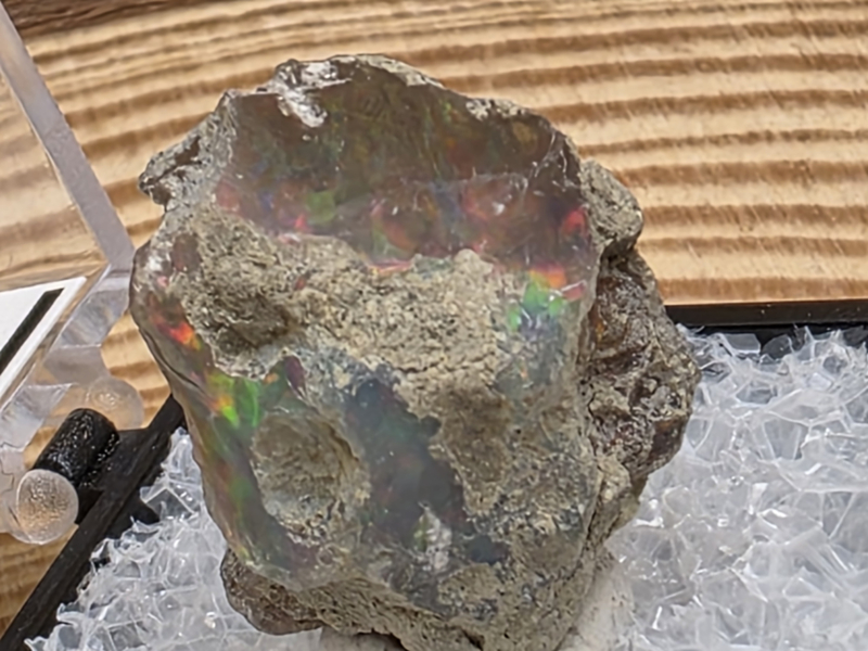 Zwarte opaal of welo opaal ruw stukje in doosje