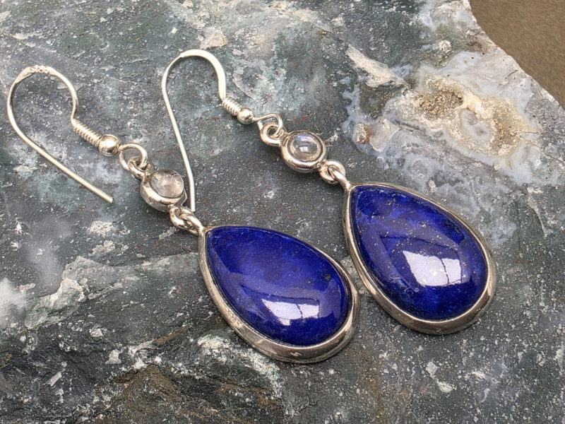 Lapis lazuli oorbellen in zilver