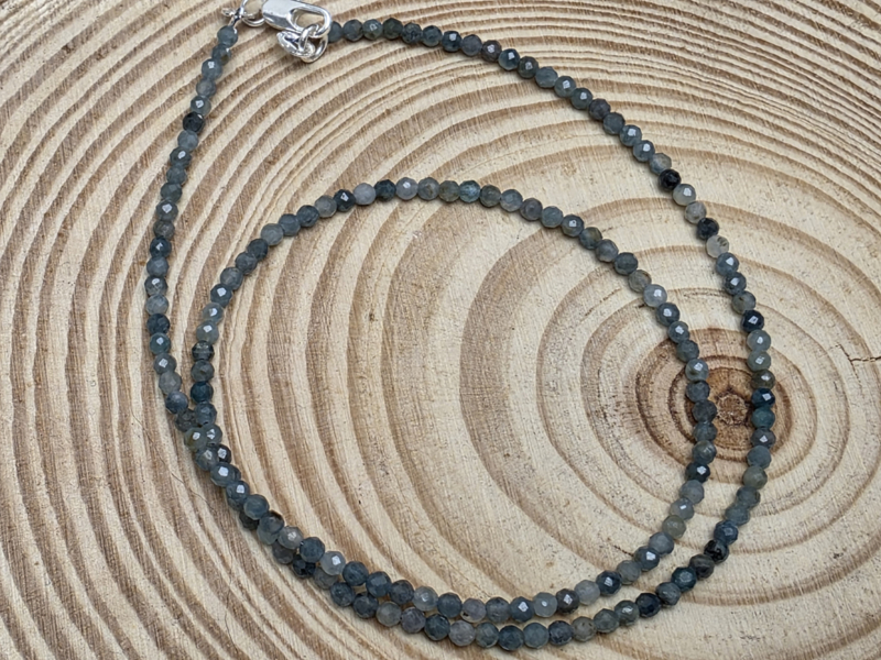 Blauwe toermalijn of indigoliet ketting facet geslepen