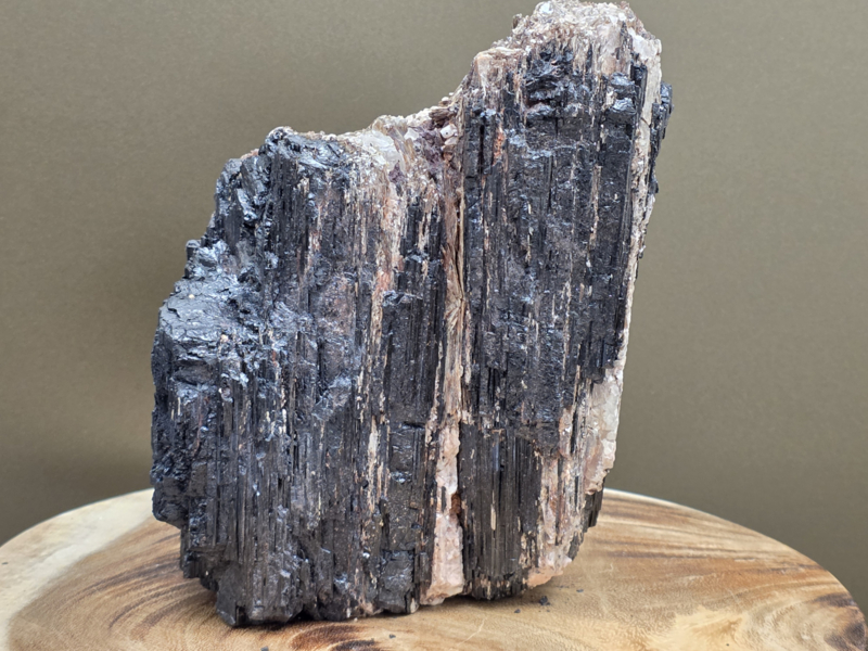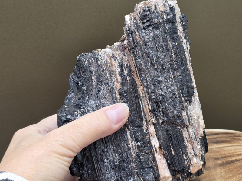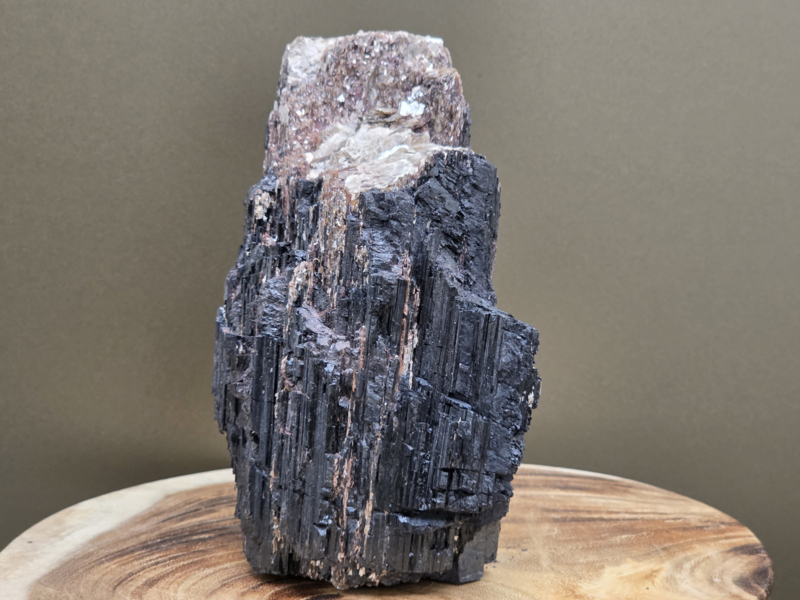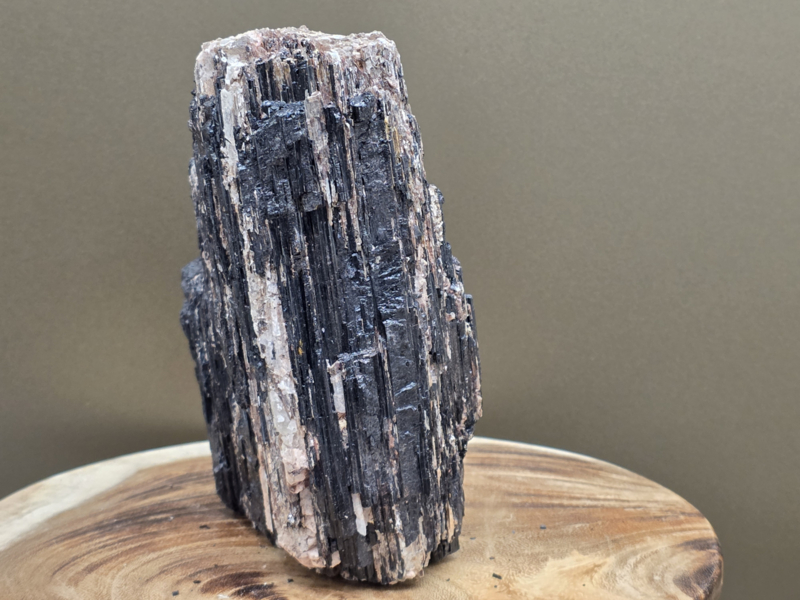 Zwarte toermalijn ruw stuk met gouden mica, hematiet en albiet