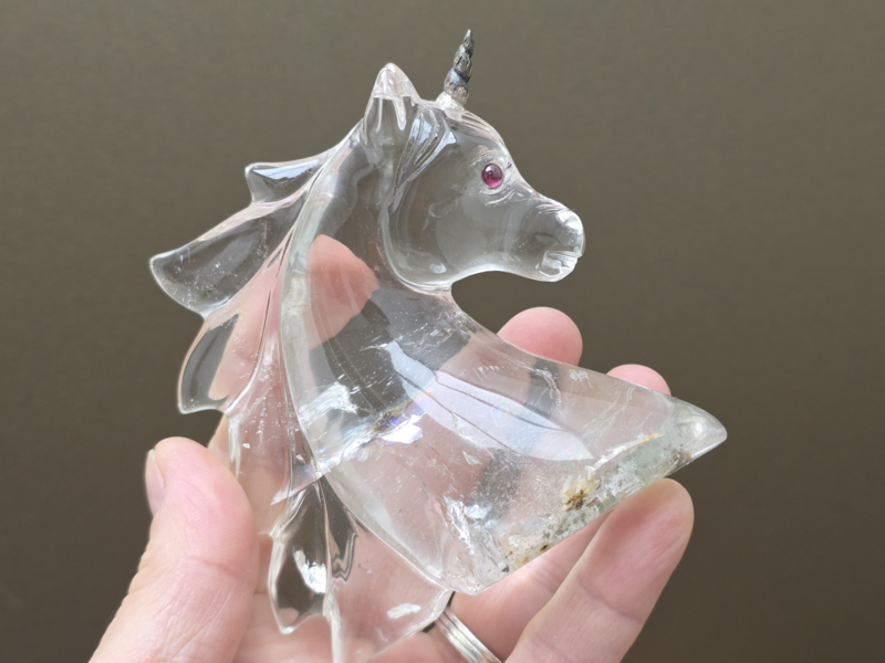 Bergkristal eenhoorn met insluitingen van Leandro De Souza