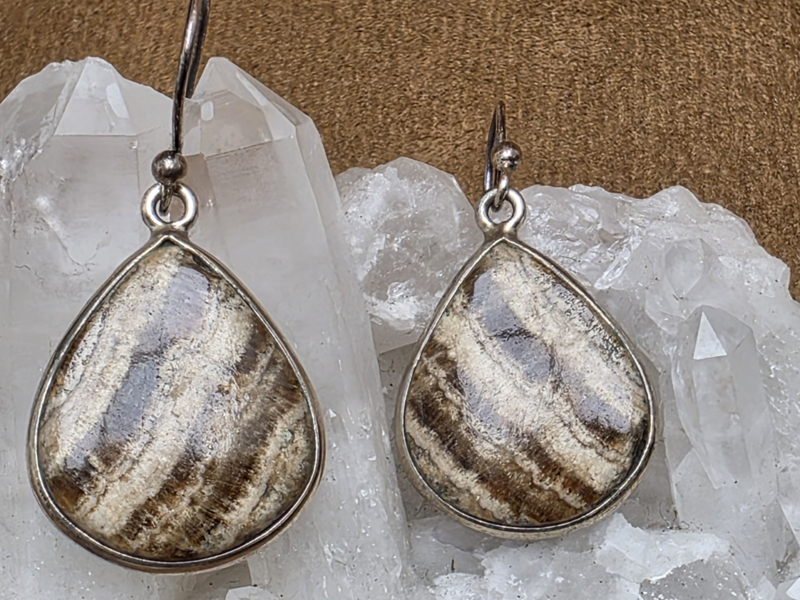 Chocolade calciet oorbellen in zilver