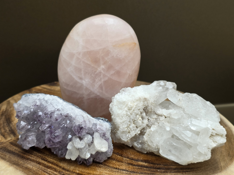 De mineralen in de winkel worden zoveel mogelijk afgestemd op elkaar zodat er een rustige energie mag zijn. Ook reinigen we regelmatig energetisch onze winkel m.b.v. salie, palo santo of florida water.