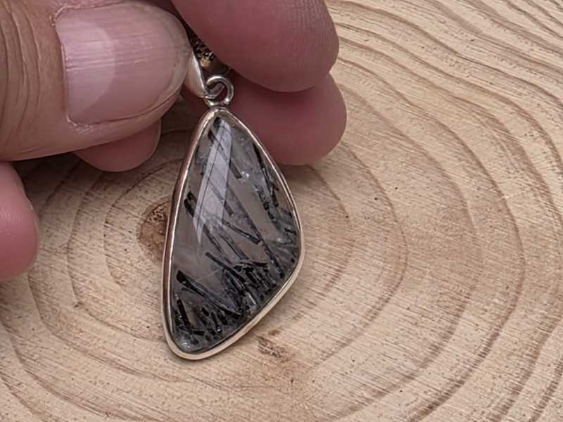 Toermalijn in kwarts hanger in zilver