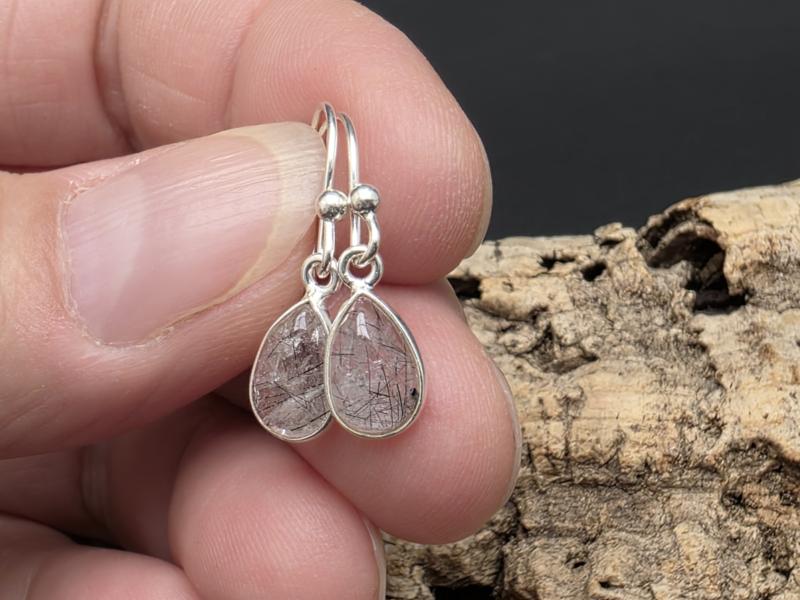 Toermalijn in kwarts oorbellen in zilver