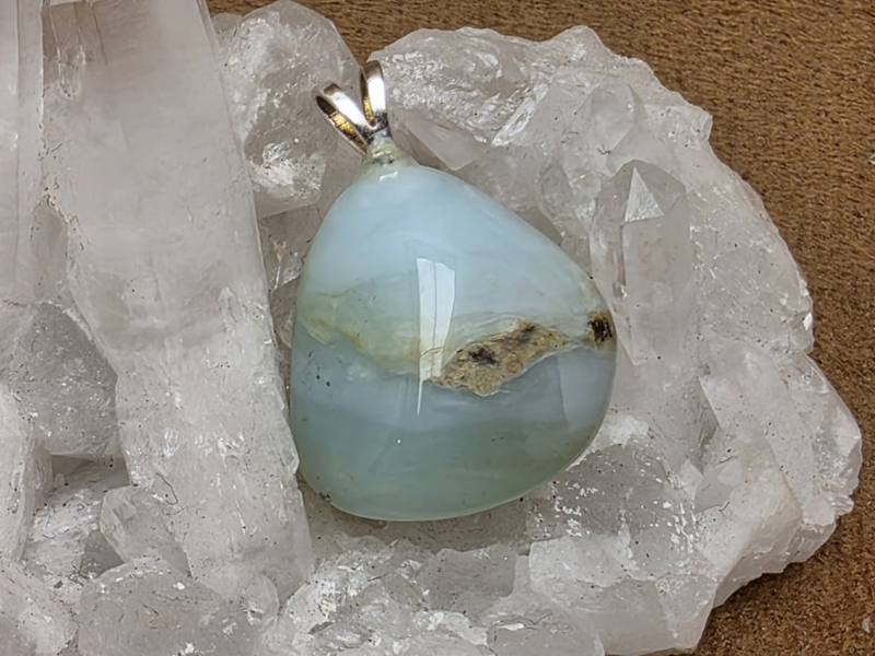 Blauwe andesopaal hanger met zilveren oogje