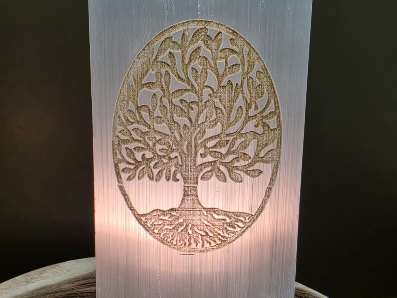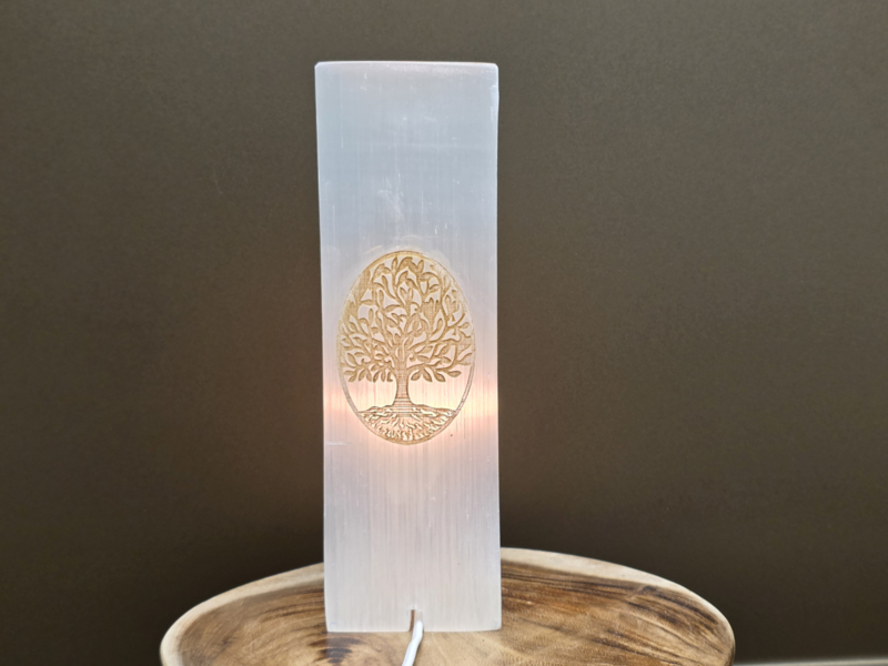 Seleniet/satijnspaat lamp 25cm met Tree of life