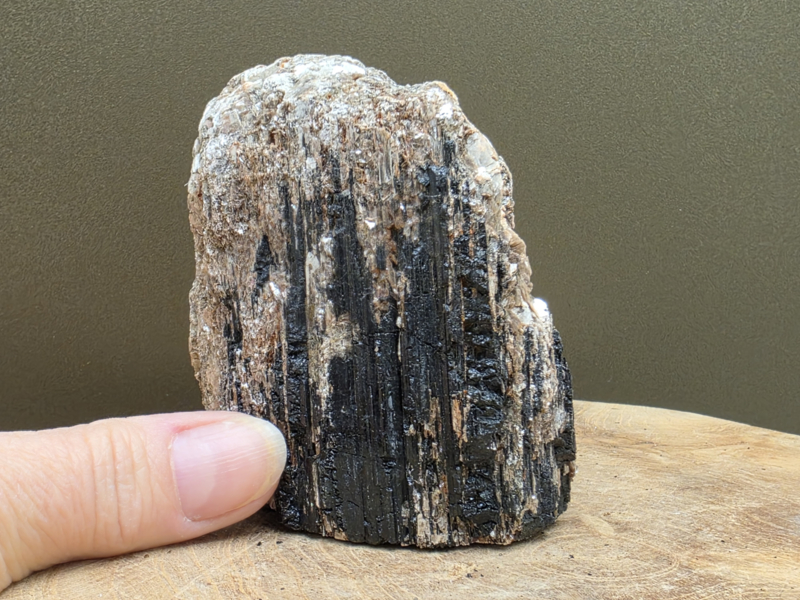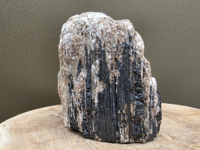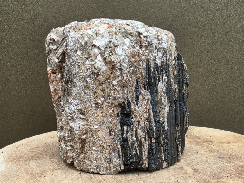 Zwarte toermalijn ruw stuk met gouden mica, hematiet en albiet