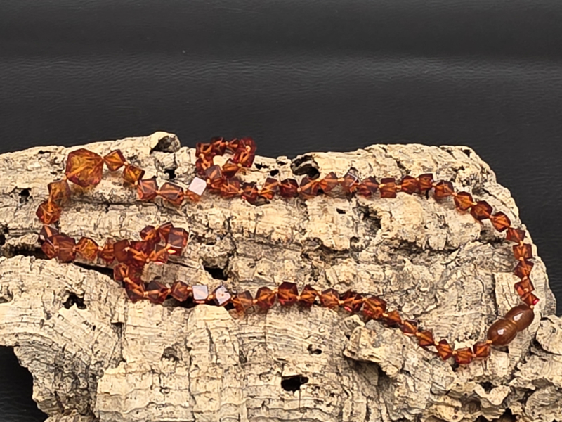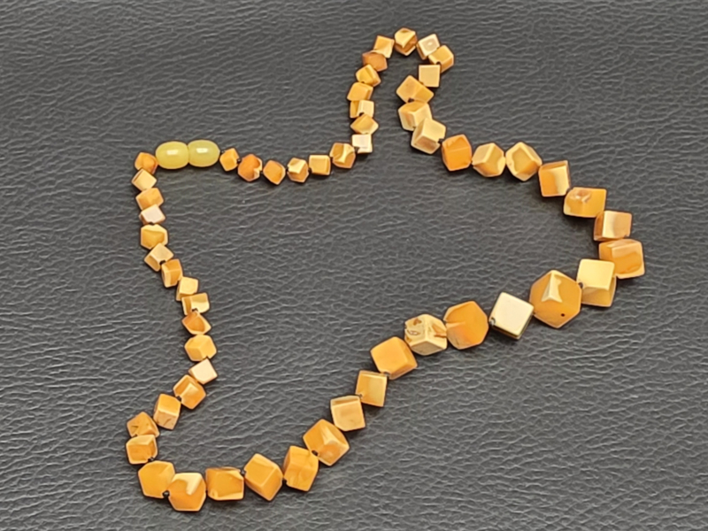 Barnsteen kettingBarnsteen ketting, de kralen zijn blokjes. Elke kraal is apart geknoopt. U krijgt het product van de foto.