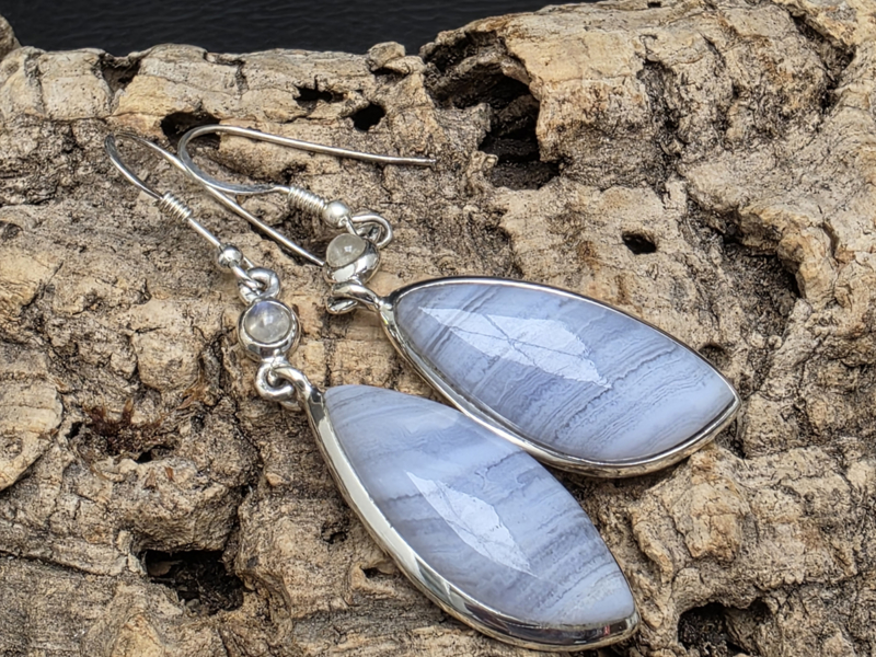 Blauwe chalcedoon of blue lace agaat oorbellenOorhangers van blue lace agaat. U krijgt het product van de foto.