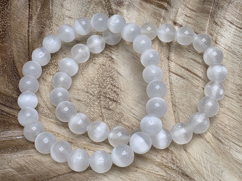 Seleniet/satijnspaat armband 8 mmSeleniet/satijnspaat armband 8 mm. U krijgt een product van de foto.