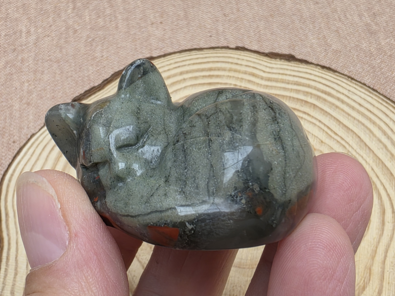 Slapende kat van drakenbloed jaspis. U krijgt het product van de foto.