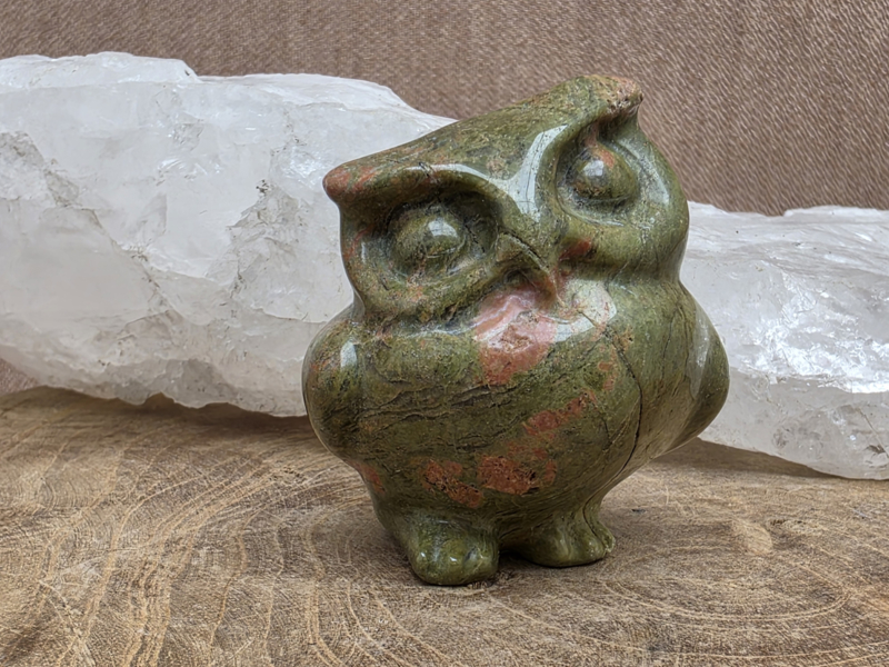 Uil van groene aventurijn. U krijgt het product van de foto.