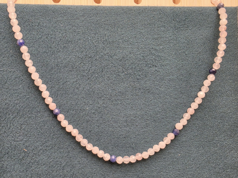 Rozenkwarts met sodaliet ketting facet geslepenRozenkwarts ketting met een paar sodaliet kraaltjes. U krijgt het product van de foto.